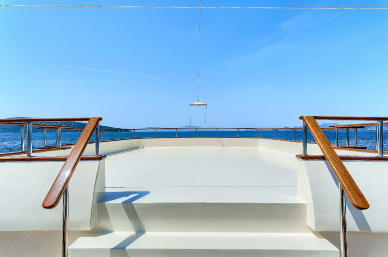 ELARA-1 has GPS, VHF, etc. all necessary navigation equipment and all required safety equipment. Fully equipped kitchen, refrigerator, deep freeze, ice maker, generator, hot water. TV, Wi-Fi, Hi-Fi Sound System. Sun mattresses and awnings both on the front and stern decks. On-deck jacuzzi. Sea ladder with platform. Tender with outboard engine. Waterskiing & Ringo. Canoe, Snorkelling Equipment, Fishing Equipment.