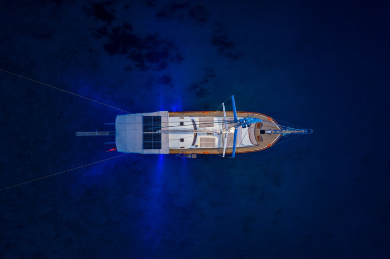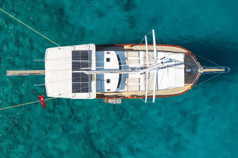 Gulet EAGLE EYES has 4 cabins (2 Master + 1 Double + 1 Twin) for 8 people. All cabins have air conditioning. All cabins have private toilets and showers. There are separate crew quarters.