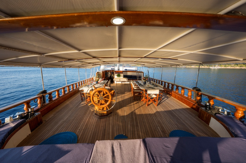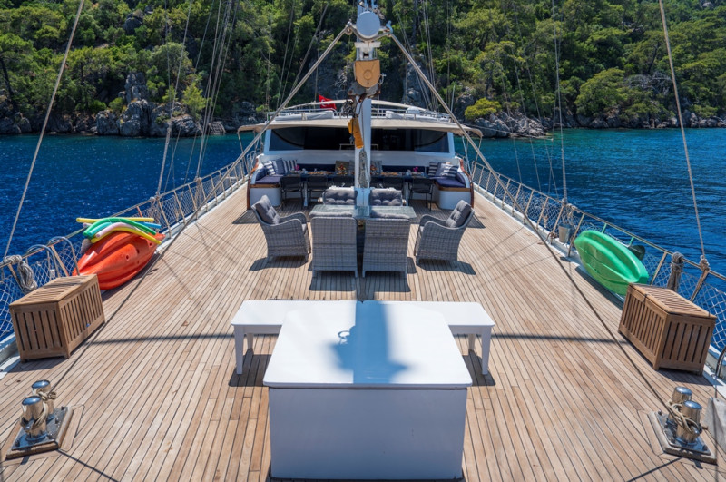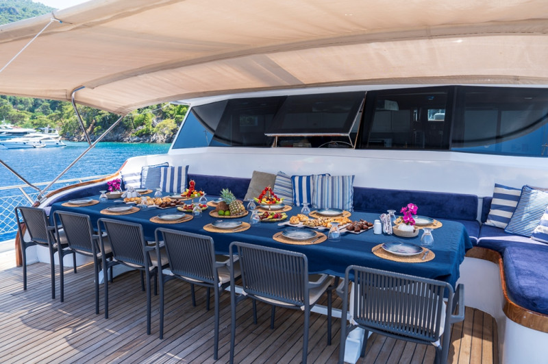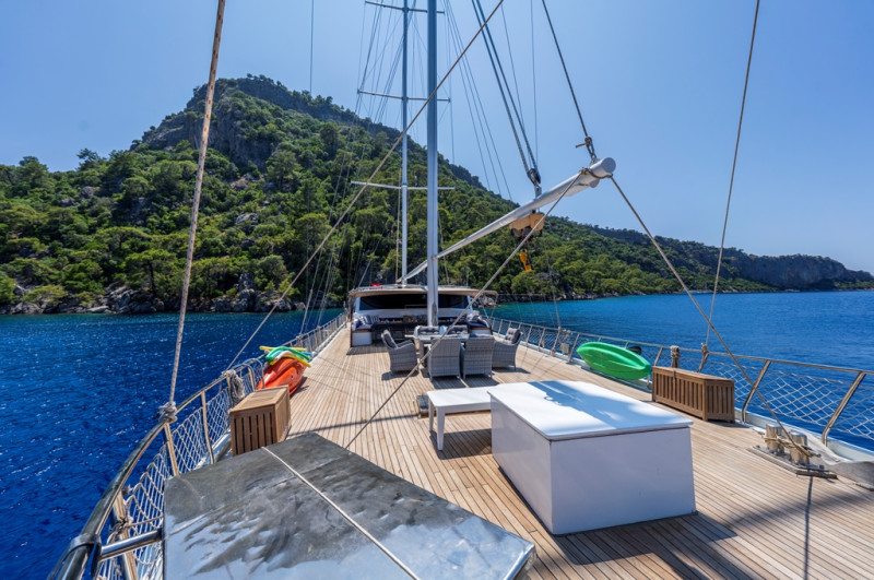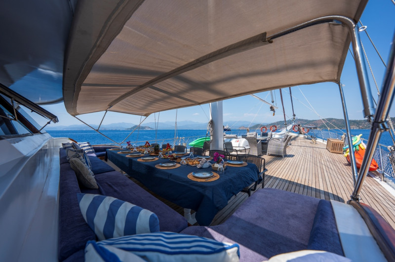 Gulet Holiday 10 is a 39,0 meters long yacht. The beam is 8,10 meters and the draft is 3,20 meters. The yacht has 2 x 460 Iveco engine. There are tanks for 5 tons of fuel and 15 tons of water.