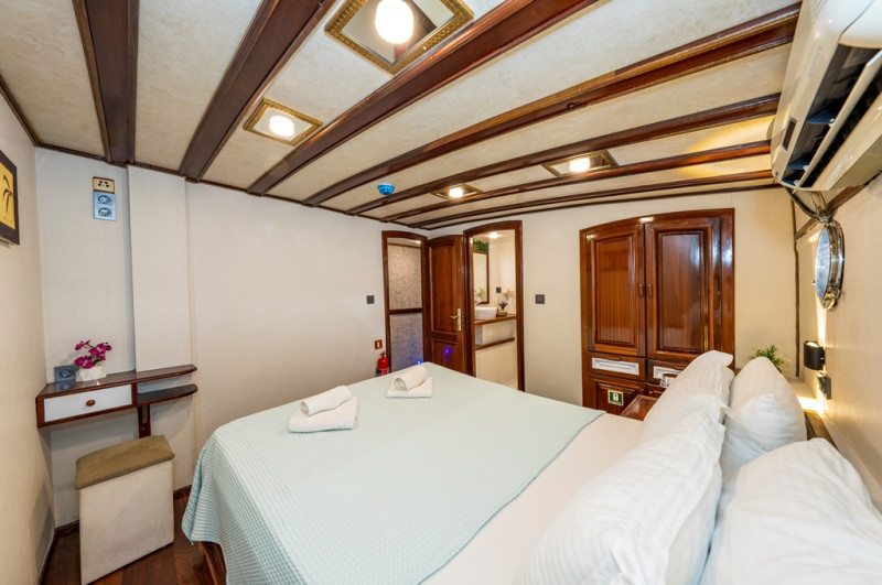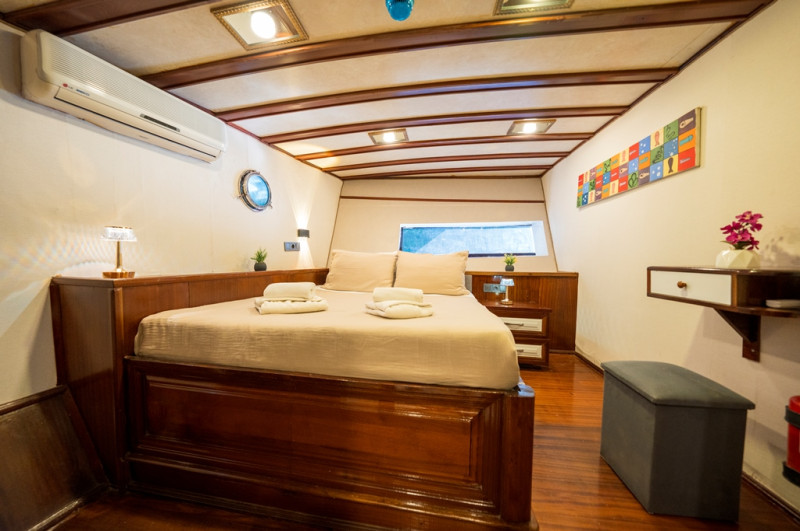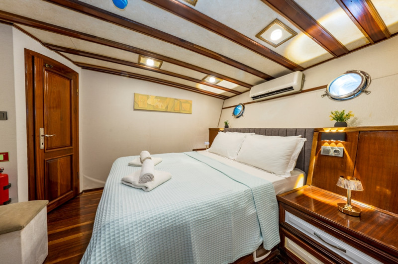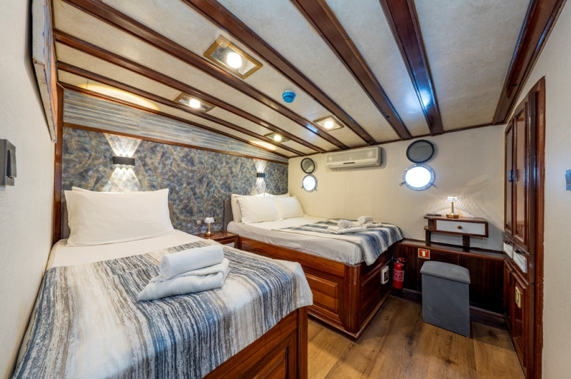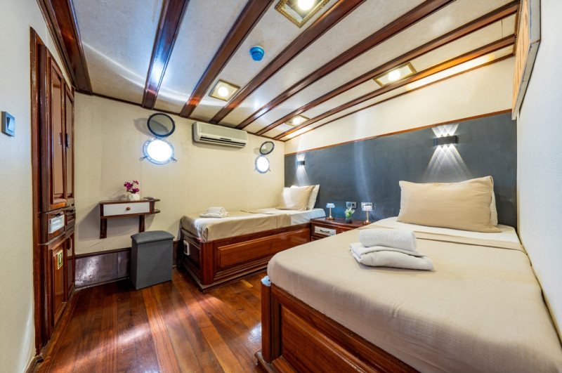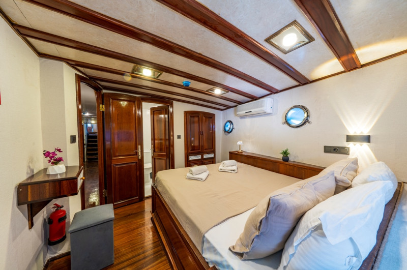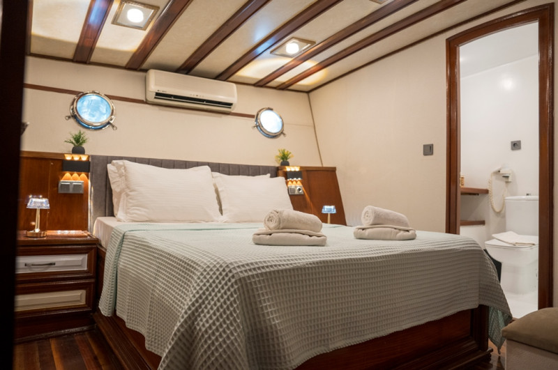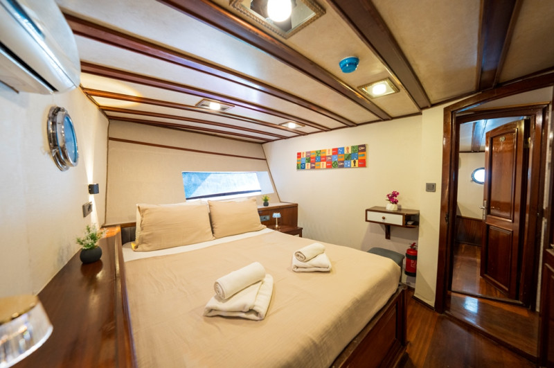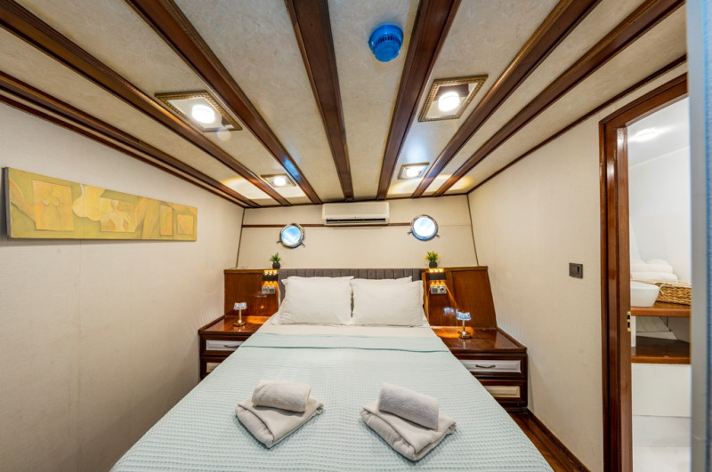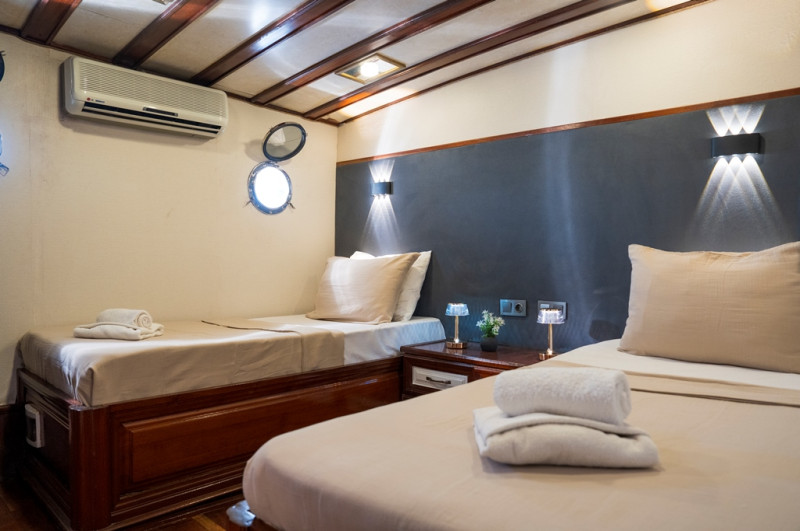 Holiday 10 yacht has 6 double + 2 twin + 2 triple cabins. All cabins have air conditioning. All cabins have private home type toilets and showers. There are separate crew quarters for total of 5-6 crew in the yacht.