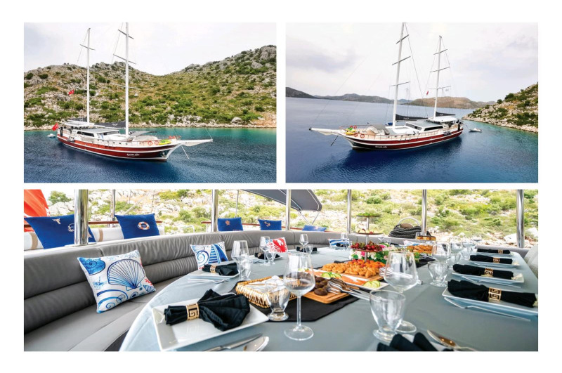 A 33 meters deluxe gulet yacht with two masts, Gulet QUESTA VITA is one of the most sought-after vessels for a private charter in Turkiiye. She boasts an exceptionally attentive, expert crew ensuring all guests get the most out of the experience. Simply enjoy lounging in the shade with a good book, sunbathing on one of the many sunbeds, or taking advantage of the complimentary water toys, from floaties, paddleboards, and kayaks to a Big Maple. The food is a definite highlight. While you’ll enjoy most evenings free to sample the local fare, onboard, look forward to freshly prepared creative meals made with high-quality local ingredients.